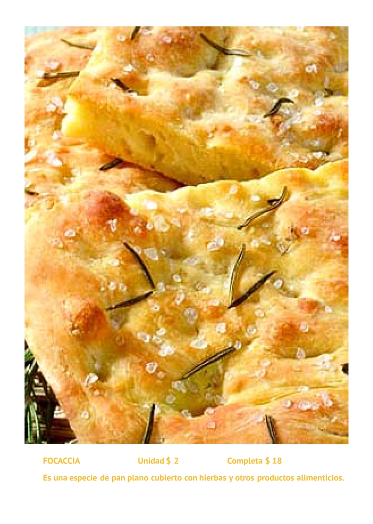 Es una especie de pan plano cubierto con hierbas y otros productos alimenticios.