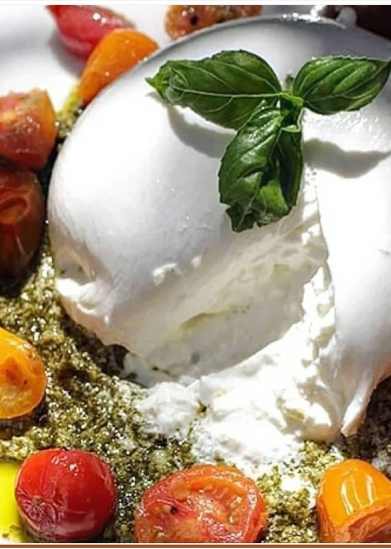 Es un queso italiano de leche de vaca hecho de mozzarella y crema. La cubierta exterior es de mozzarella sólida, mientras que el interior contiene stracciatella y crema, lo que le da unatextura inusual y suave.