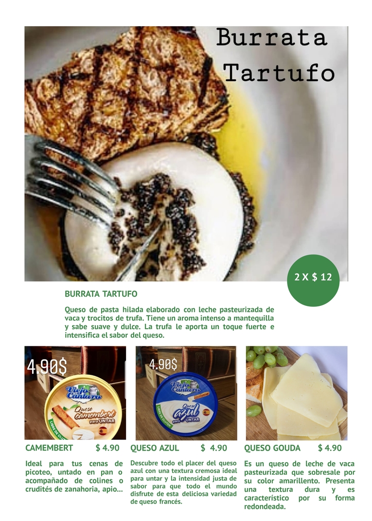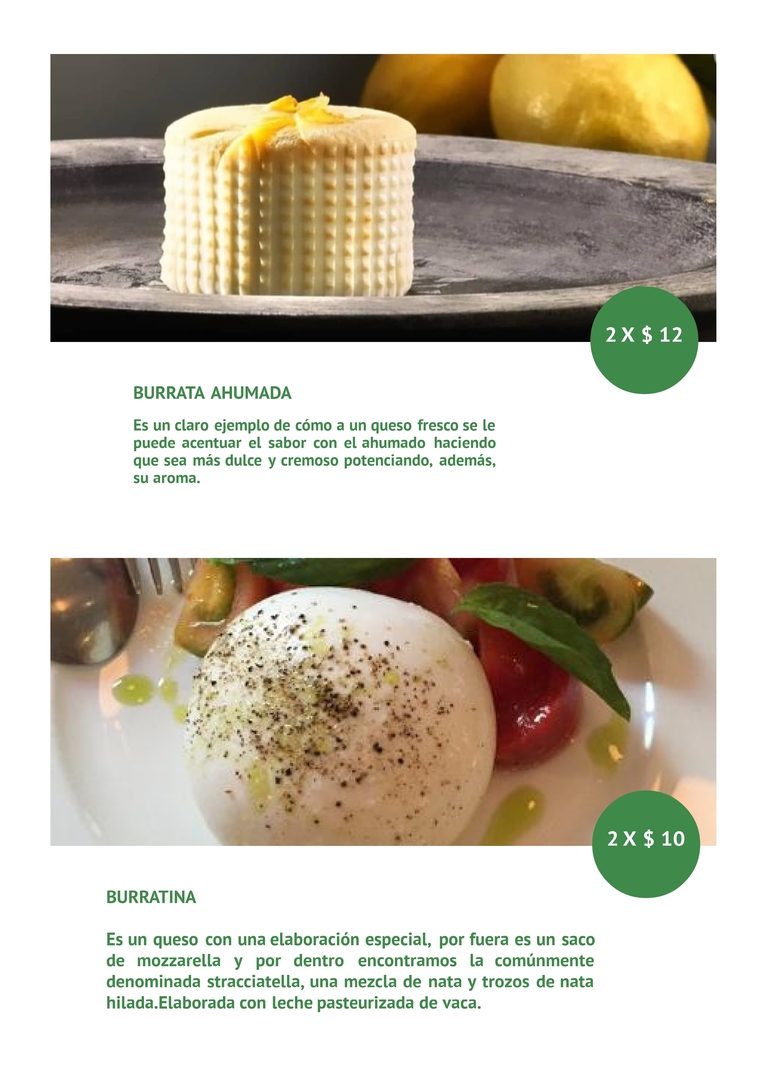 Es un queso con una elaboración especial, por fuera es un saco de mozzarella y por dentro encontramos la comúnmente denominada stracciatella, una mezcla de nata y trozos de nata hilada.Elaborada con leche pasteurizada de vaca.